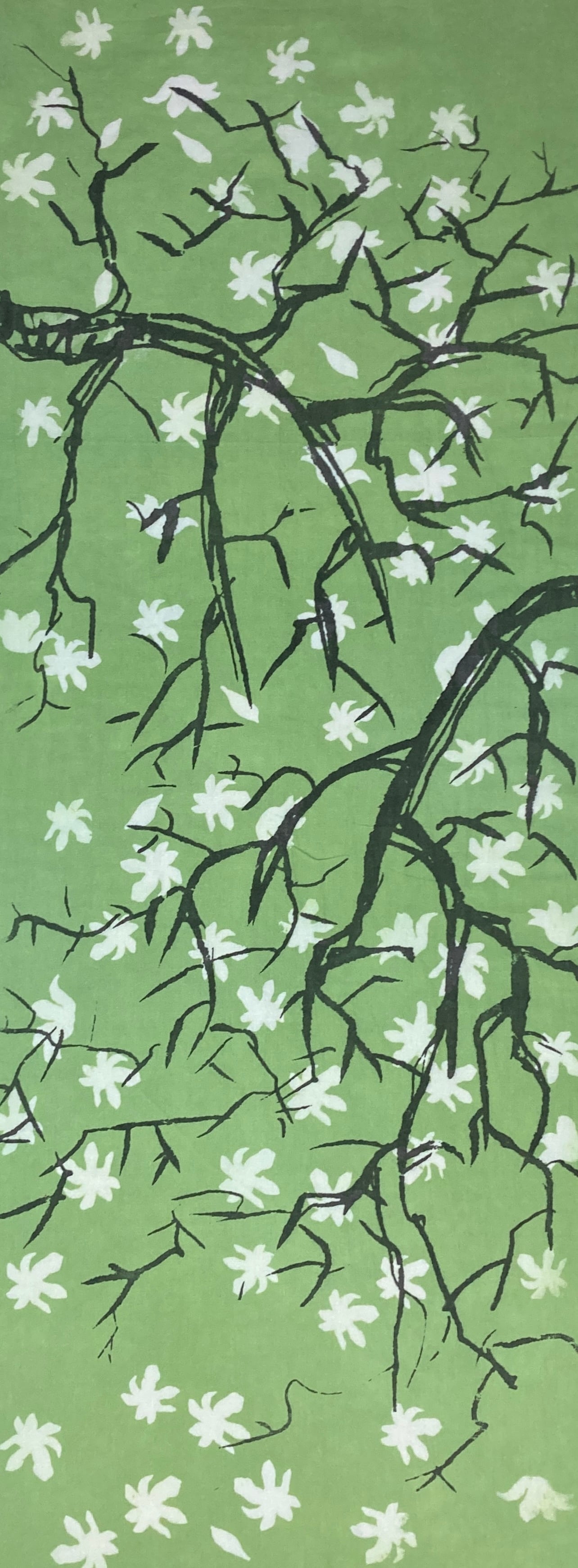 春を告げる花といわれ、ベルベットのような起毛した黄緑色の蕾から寒空の下真っ白で繊細な花を咲かすコブシをイメージして染めました